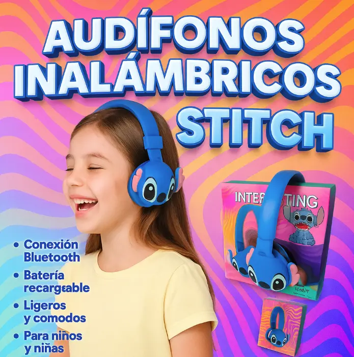 Con su batería de 150 mAh, ofrecen hasta 6 horas de diversión continua, y si se acaba la batería, ¡pueden conectarse con cable gracias a su puerto de 3.5 mm! Su diseño inspirado en Stitch los hace irresistibles y convierte cada momento en una aventura con estilo.