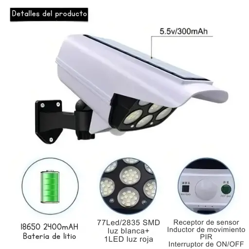 Luz Solar con Simulación de Cámara + 77 LED – Seguridad e Iluminación Inteligente