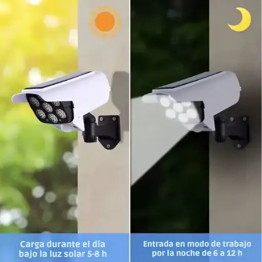 Gracias a su sensor de movimiento PIR integrado, detecta cualquier actividad en un rango de 3 a 9 metros con un ángulo de 120°. Perfecta para jardines, patios, garajes, porches y entradas de vehículos, brinda tranquilidad en cada rincón.