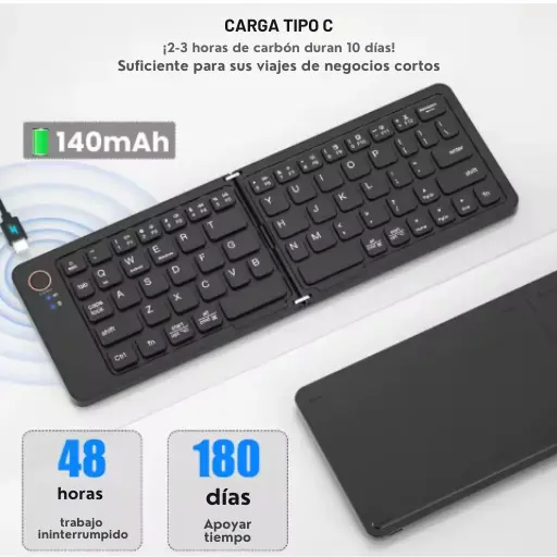 El Teclado Bluetooth Plegable transforma cualquier lugar en tu oficina portátil, ofreciéndote libertad y productividad sin límites.